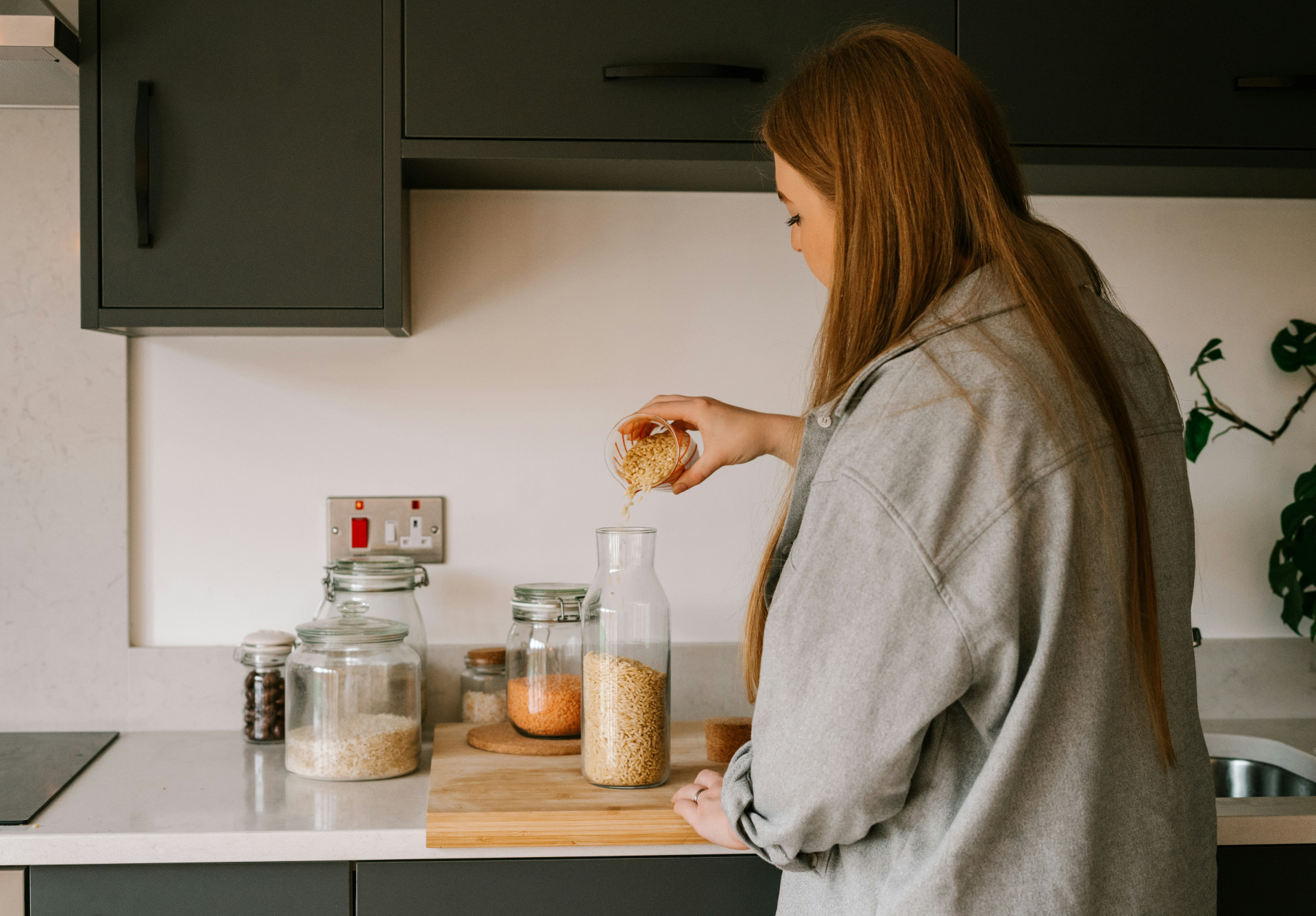 - Tørvarer: Opbevar basisvarer som ris, pasta og mel i gennemsigtige beholdere, så du hurtigt kan se, hvor meget du har tilbage.